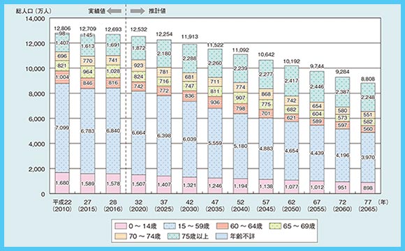 高齢者人口が増加しており、2025年には全人口の約3分の1が65歳以上となると予測されています。