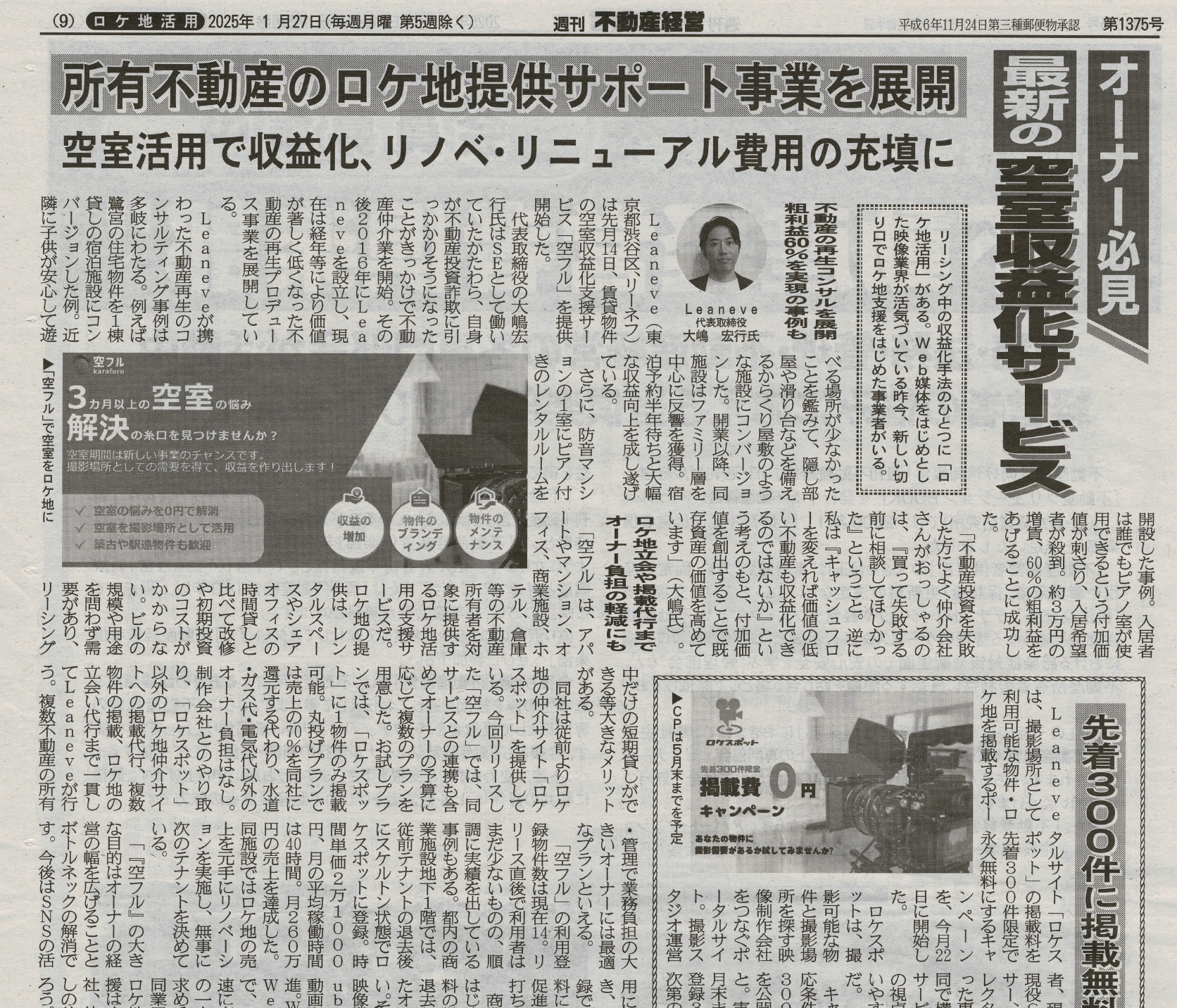 2025年1月27日発行の週刊不動産経営で弊社の空フルが注目記事として掲載されています。